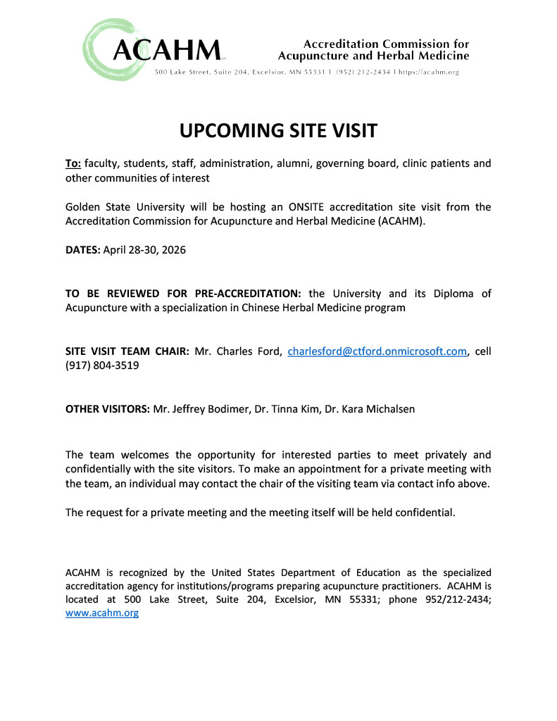 ACAHM UPCOMING SITE VISIT